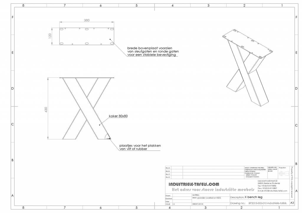 Wilt u een eettafelbankje maken, dan kunt u bij ons terecht voor stoere, losse bankpoten. Deze bankpoten zijn perfect voor het creëren van een robuuste bank voor naast uw industriele tafel, of eventueel als tv-meubel. Het X model eetkamerbankpootje geeft uw eetbankje een echt industriele look.