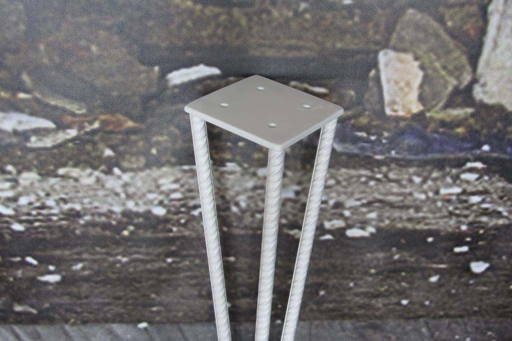 Onze betonstaal hairpin salontafelpoot geeft uw salontafel een mooie industriële, retro look, maar de tafel oogt ook slank en elegant. De tafelpoot is gemaakt van sterk staal.Het gevlochten framewerk geeft een salontafel of bijzettafel een unieke uitstraling. De smalle betonstaal hairpin leg is onder elke afmeting tafelblad te monteren. Aan de bovenkant van de poot zit een bevestigingsplaat gemonteerd waarmee u gemakkelijk de poten aan uw blad kunt schroeven.
