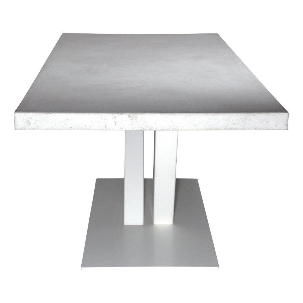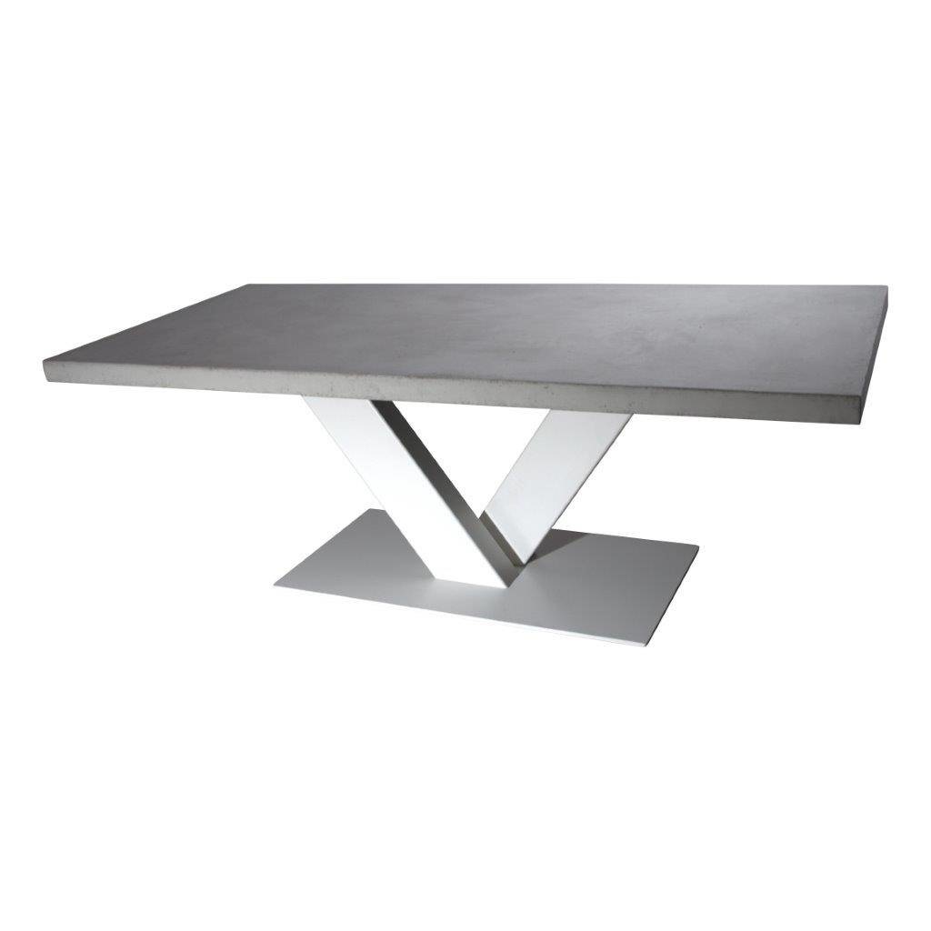 Beton tafel voorzien van zware, witte V tafelpoot.