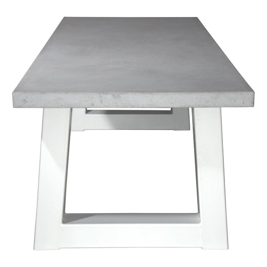 Beton tafel voorzien van zware trapezium tafelpoten.