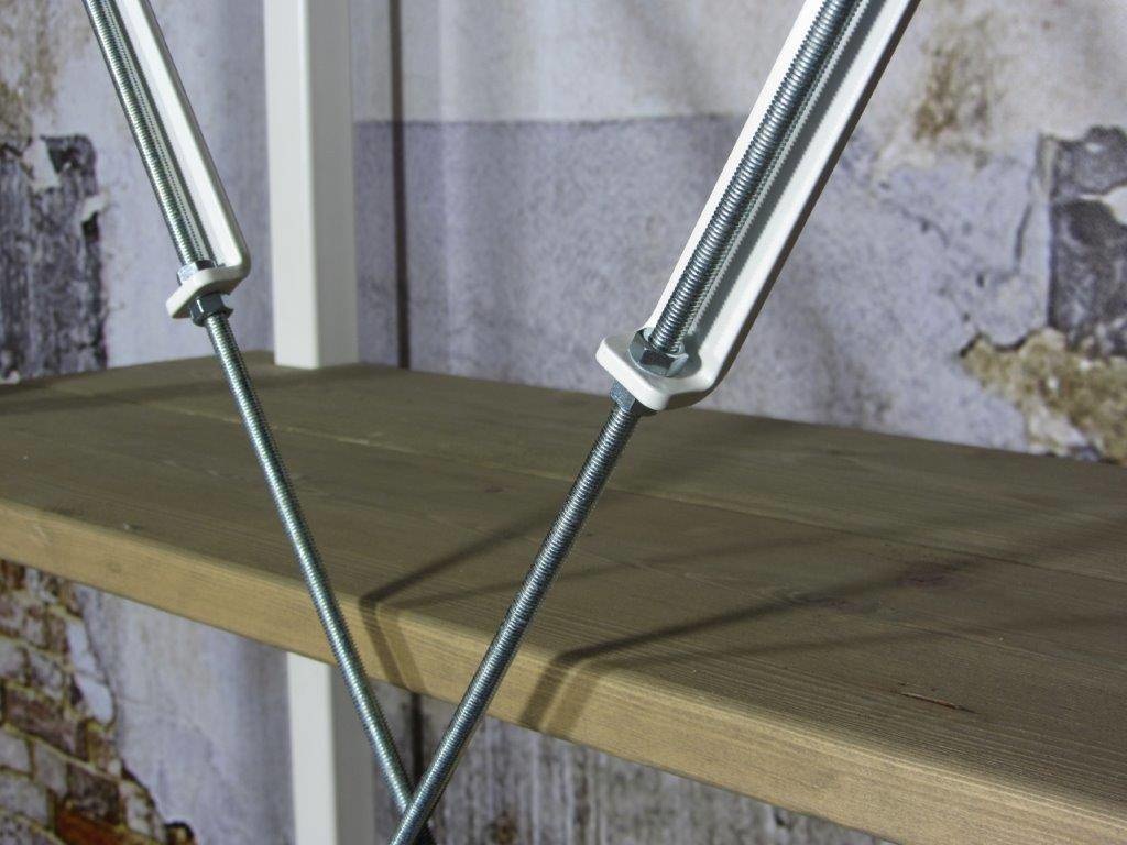 Niet alleen draagt de stoere stalen spanner bij aan het industriele geheel maar hij zorgt er ook voor dat de kast in breedte verstelbaar is, hierdoor kunt u de kast geheel naar wens op breedte stellen; de minimale maat is 500mm breed en de maximale maat is 2000mm breed.
