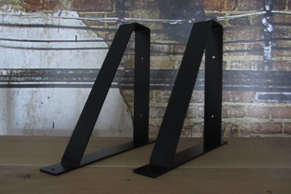 Het staal is op kwaliteit geselecteerd, vervolgens op de laser gesneden en gelast door ervaren lassers. Wij hechten veel waarde aan de kwaliteit van ons staal. De plankdragers zijn voorzien van een zwarte poedercoating, voor een goede bescherming en daardoor zijn ze eenvoudig schoon te maken.