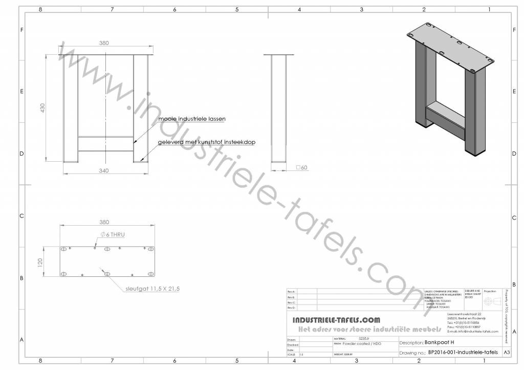 Wilt u een eettafelbankje maken, dan kunt u bij ons terecht voor stoere, losse bankpoten. Deze bankpoten zijn perfect voor het creëren van een robuuste bank voor naast uw industriele tafel, of eventueel als tv-meubel. Het H model eetkamerbankpootje geeft uw eetbankje een echt industriele look.