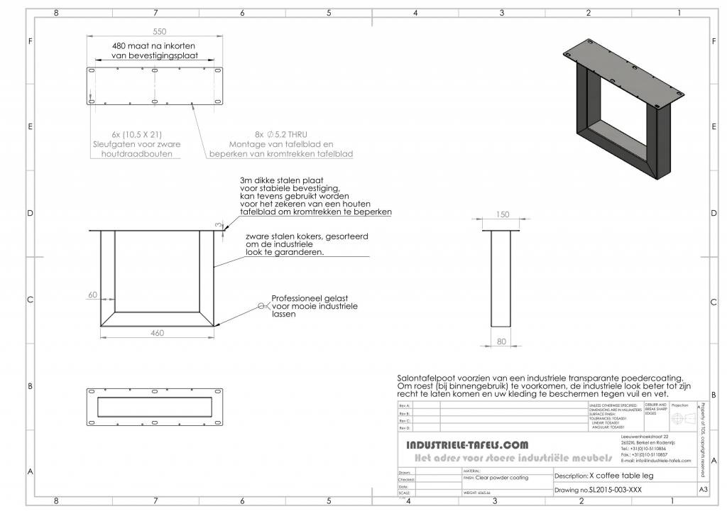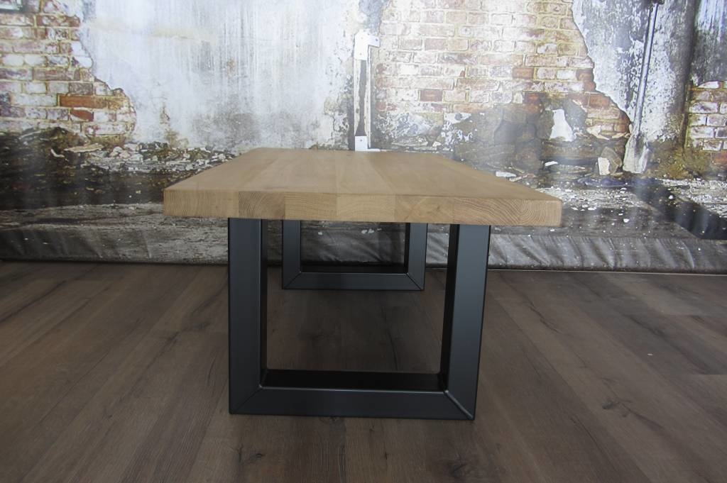 Onze U model salontafel poten, gemaakt uit stalen kokers van 8 x 6 cm breed, geven uw tafel een echt industrieel karakter. De gebruikte stalen profielen worden in de vorm van een U gelast, door gebruik te maken van rechthoekige kokers komen deze industriele salontafel poten minder massief over dan de salontafel poten uit vierkante kokers. De zichtbare lassen geven dit salontafel onderstel een extra stoer en robuust karakter, echt industrieel!