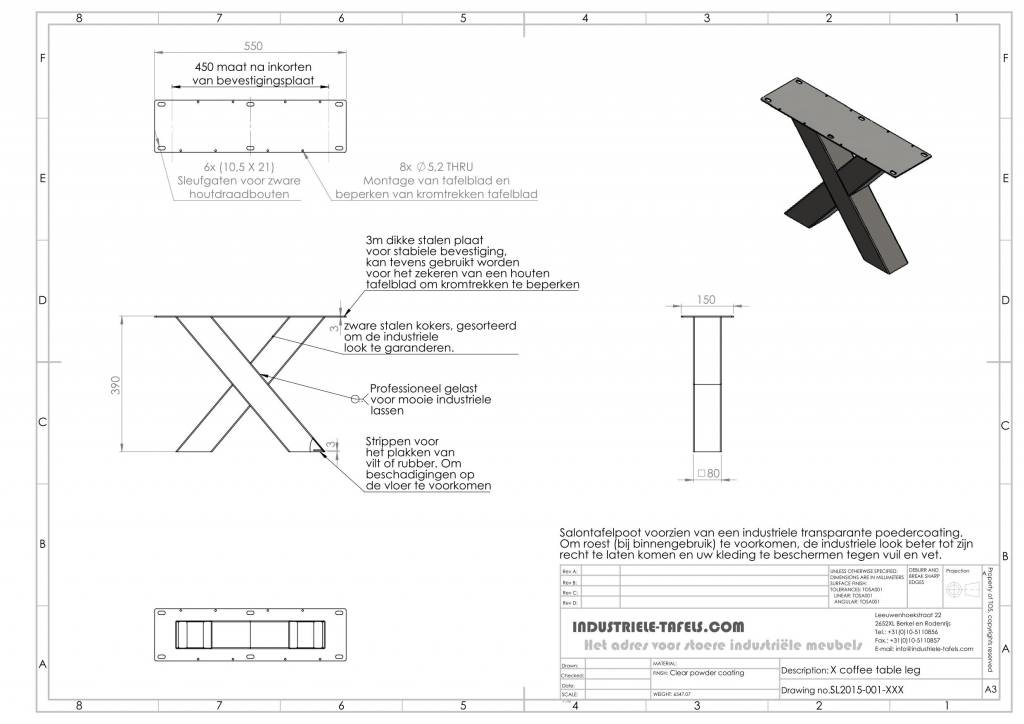 Onze X model tafelpoten, gemaakt uit stalen kokers van 8 x 8 cm breed, geven uw tafel/bankje een echt industrieel karakter. De gebruikte stalen kokers kruisen elkaar waardoor de populaire X vorm ontstaat. De zichtbare lassen geven deze poten een extra stoer en robuust karakter, echt industrieel!