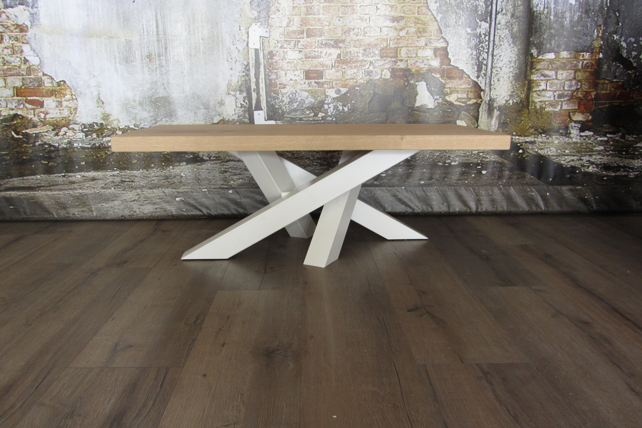 Ons twist tafelonderstel gemaakt uit zware stalen kokers van 8 x 8 cm breed, geven uw tafel een echt industrieel karakter. De gebruikte stalen kokers kruisen elkaar als een soort mikado effect. De zichtbare lassen geven het tafelonderstel een extra stoer en robuust karakter, echt industrieel!