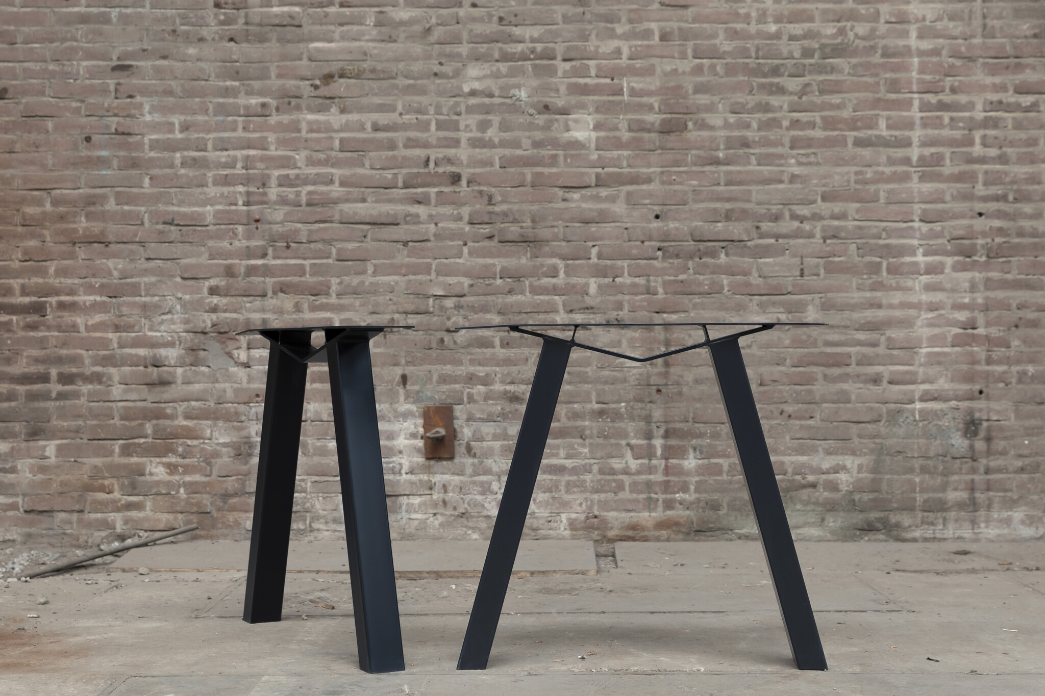 De stalen M tafelpoten, worden gemaakt uit stalen kokers van 8 x 6 cm breed. Deze stalen tafelpoot is favoriet bij ons wegens het design en het praktische ontwerp! De M tafelpoot is ondanks de smalle profielen heel stabiel.