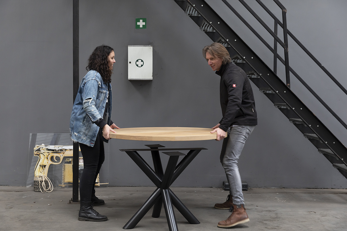 Doordat je zelf het ronde tafelblad plaatst op deze stalen tafelpoot kun je exact de gewenste diameter van jouw tafel kiezen.