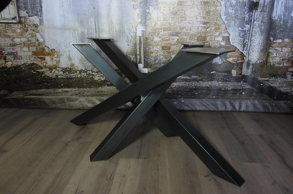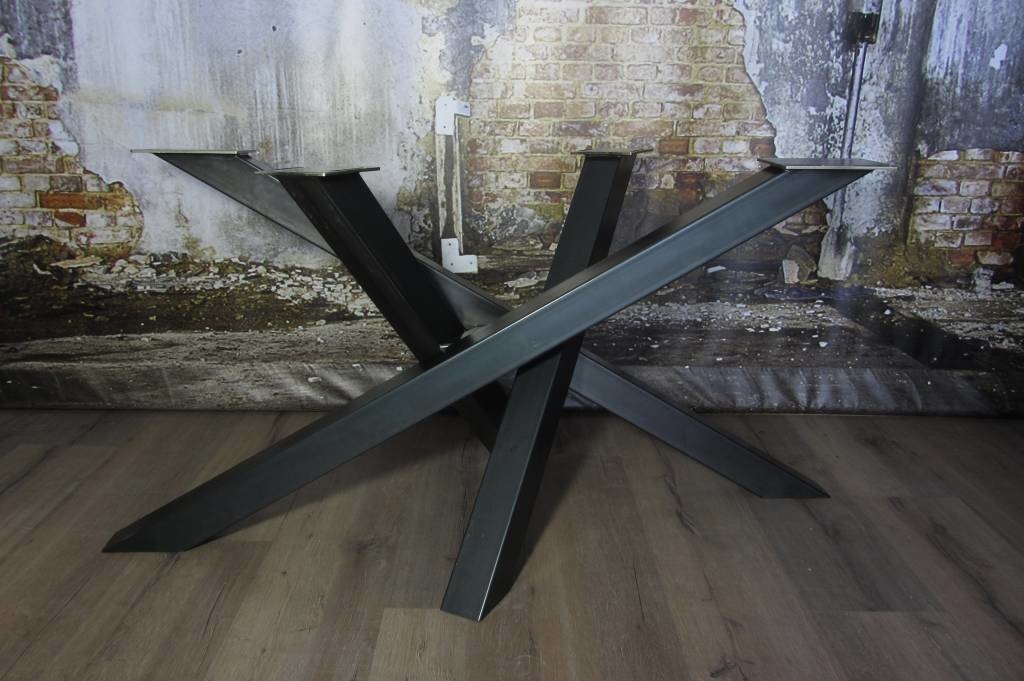 Ons twist tafelonderstel gemaakt uit zware stalen kokers van 8 x 8 cm breed, geven uw tafel een echt industrieel karakter. De gebruikte stalen kokers kruisen elkaar als een soort mikado effect. De zichtbare lassen geven het tafelonderstel een extra stoer en robuust karakter, echt industrieel!