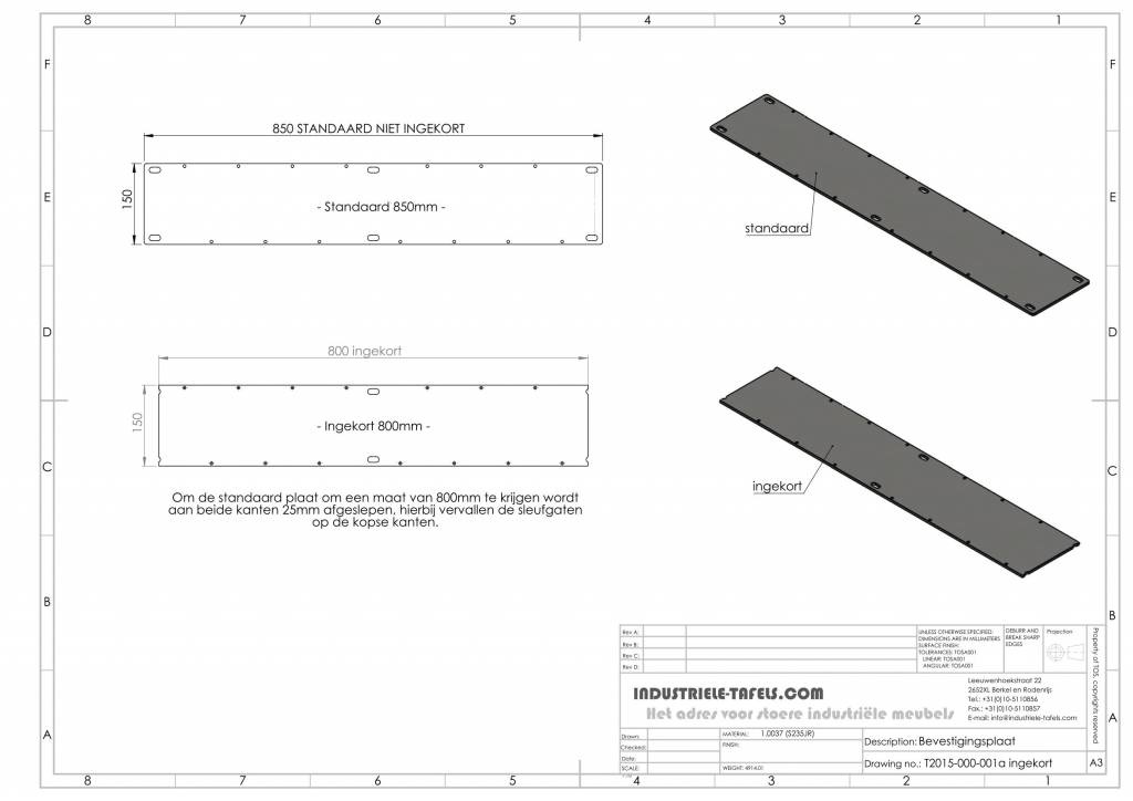 - Door de bevestigingsplaten te voorzien van vele ronde gaten kan het tafelblad op vele plaatsen vastgeschroefd worden, op deze manier kan het kromtrekken van het tafelblad beperkt worden.