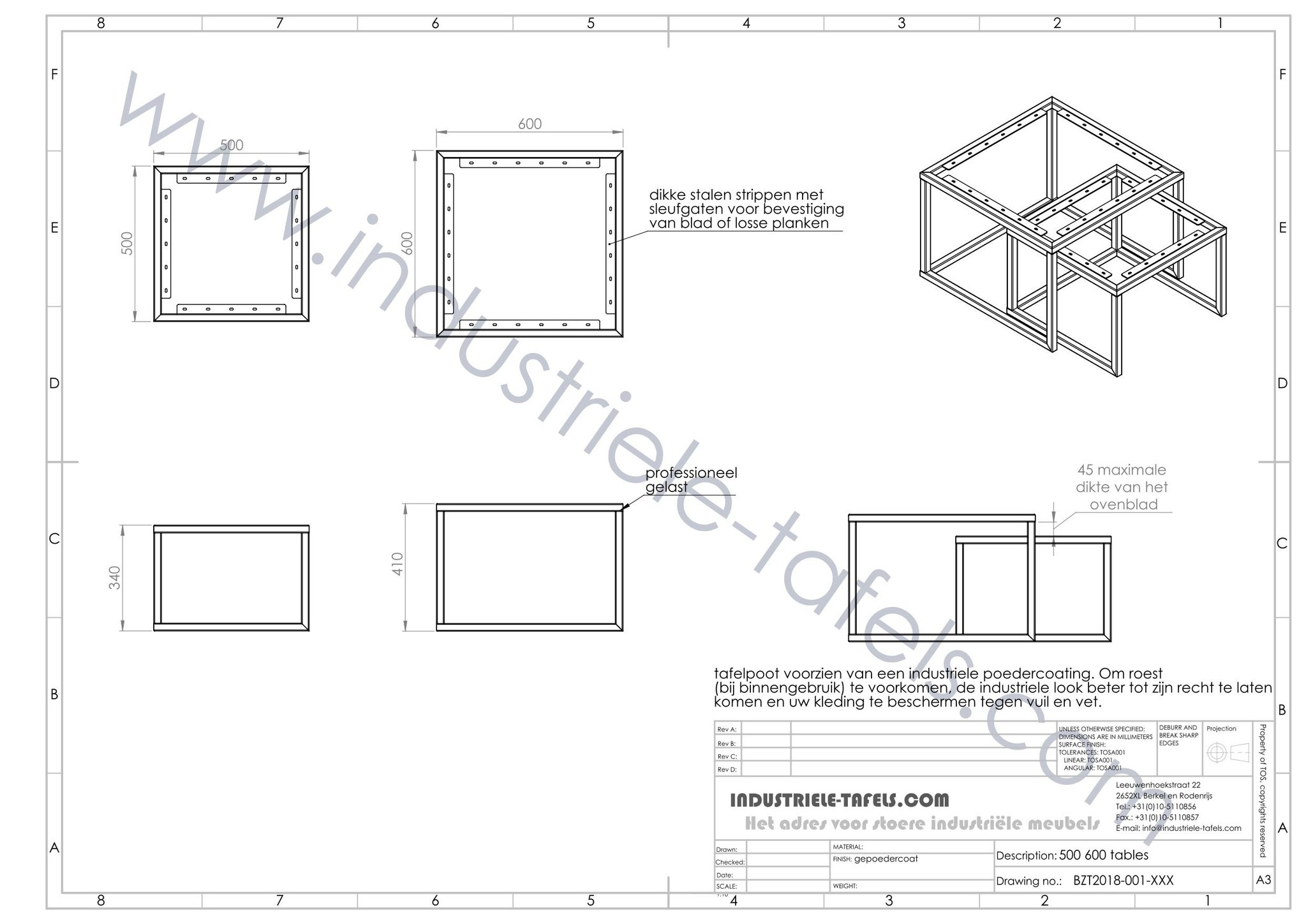 De salontafelframes zijn gemaakt uit stalen kokers van 2,5cm dikte. De lassen op de salontafelframes zijn zichtbaar gebleven voor een stoer industrieel karakter. De frames zijn voorzien van een egale, hoogwaardige poedercoating in een zwarte kleur.